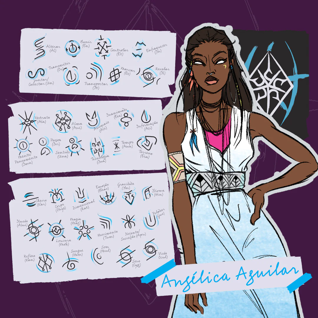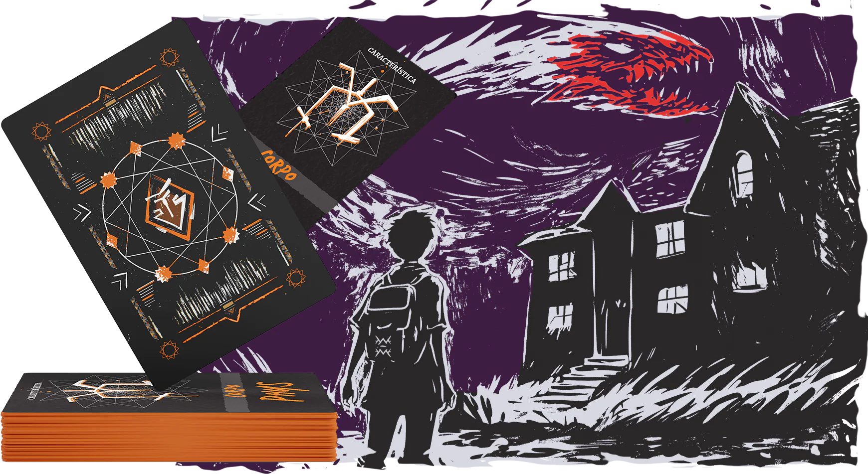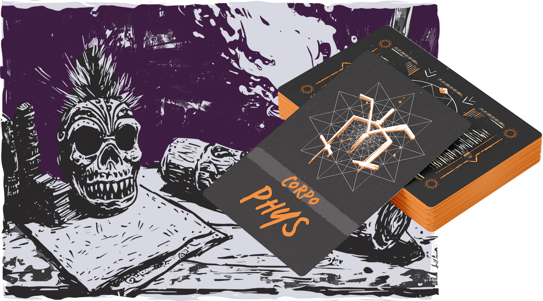 Para organizar suas Partículas neste jogo, sugerimos cartas: cada uma representando um aspecto da linguagem mágica, seu símbolo, nome e significado. É assim que você conjura, constrói e transforma — escolhendo suas palavras com criatividade, lógica e intenção.